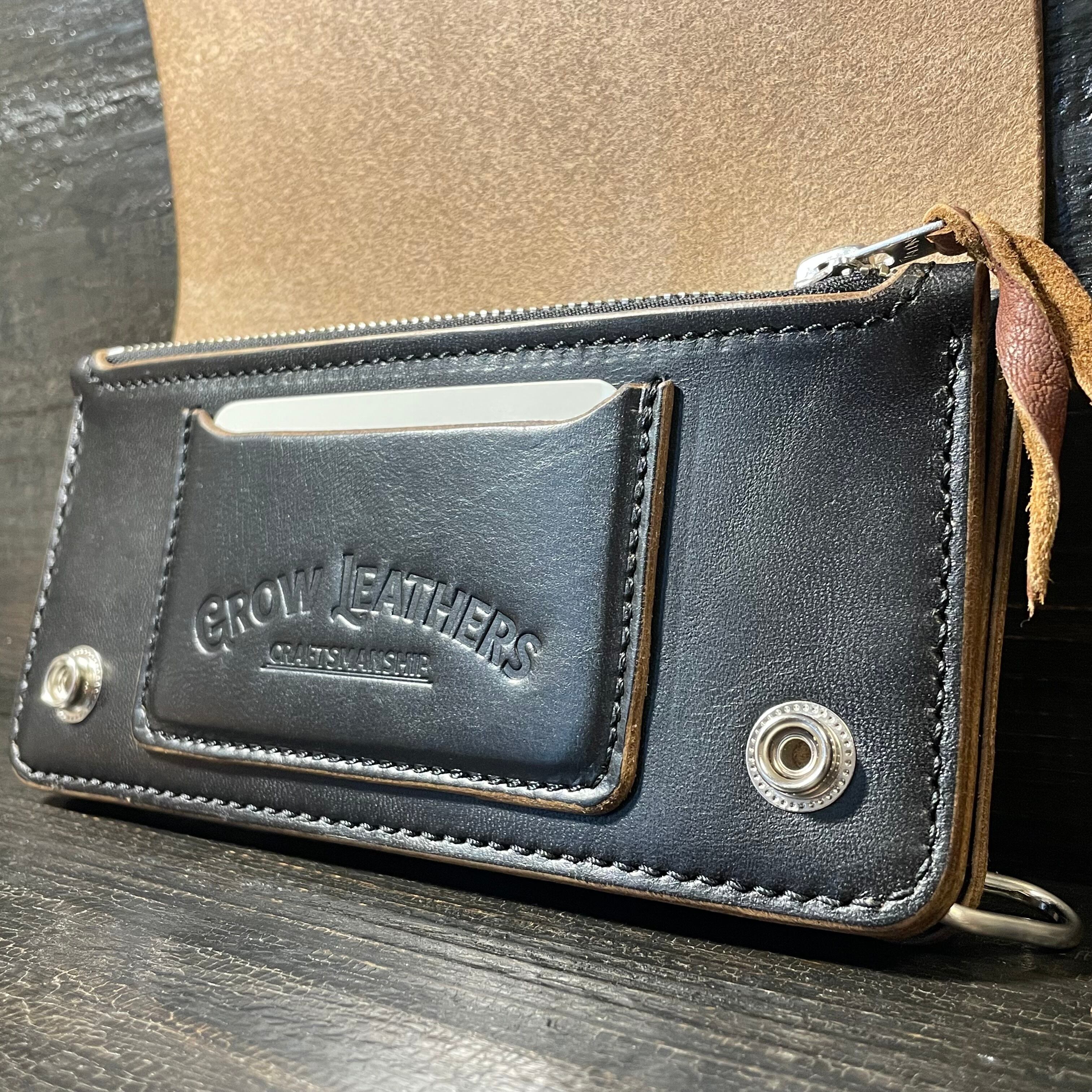 3層構造でしっかりと厚みがあり、無骨で重厚感のあるトラッカーウォレットです。